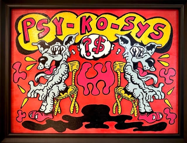 enamel and wood cutouts on wood panel, 18"x24", 2025